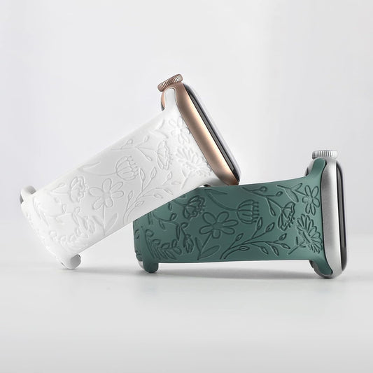 2 Pack Flower Engraved Sport Strap Compatible with Apple Watch Bands 38Mm 40Mm 41Mm, Women Floral Laser Soft Silicone Wristband Replacement Iwatch Series 8 7 6 5 4 3 2 1 SE