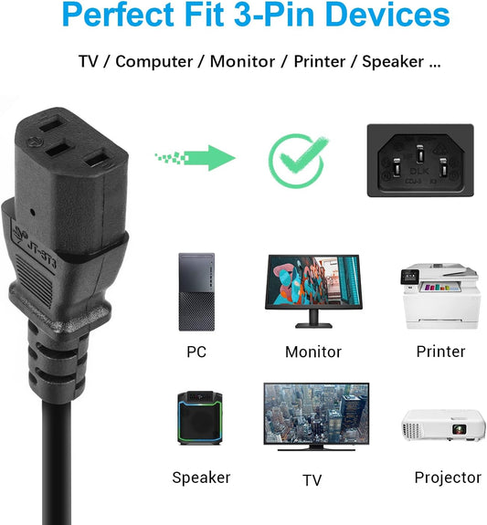 25Ft (7.6M) Computer Power Cord, NEMA 5-15P to C13, 10A 125V, 18AWG, Black Replacement AC Power Cord, Printer Power Cord, PC Power Supply Cable, Monitor Power Cable - UL Listed (PXT10125)