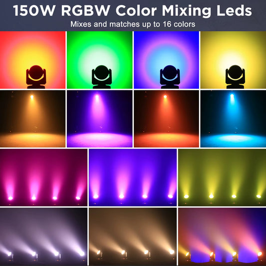 150W High Brightness Moving Head Light COB+LED RGBW 4In1 Stage Effect Lighting Rotating DMX512 for DJ Party Wedding Disco